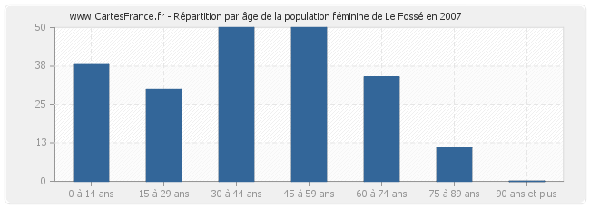Répartition de la population féminine de Le Fossé par âge en 2007 :