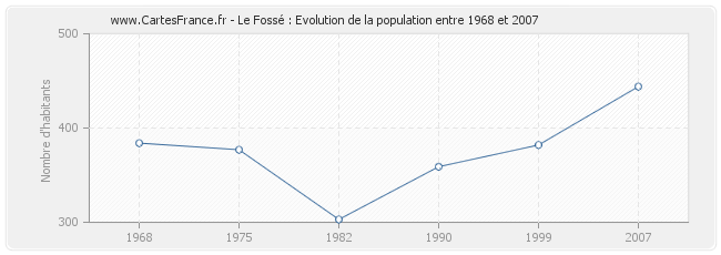 Cette courbe reprend l'historique de la population de Le Fossé de 1968 à 2007 en interpolation cubique. Ceci permet d'obtenir plus précisément la population de la commune de Le Fossé les années ou aucun recensement n'a été effectué.