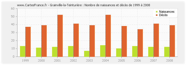 - Grainville-la-Teinturière en 2008 : 12 naissances et 39 décès
