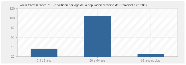 - Femmes de 20 à 64 ans habitant Grémonville : 104