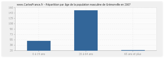 - Hommes de 20 à 64 ans habitant Grémonville : 151