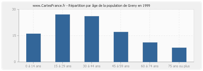 - Population de Greny de 15 à 29 ans : 27 habitants