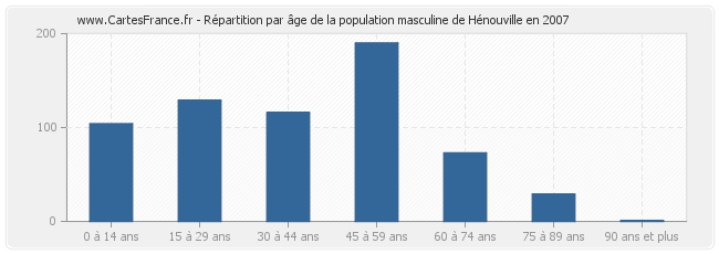 Répartition de la population masculine de Hénouville par âge en 2007 :
