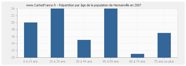 - Population de Hermanville de 45 à 59 ans : 24 habitants