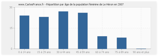 - Femmes de 30 à 44 ans habitant Le Héron : 27
