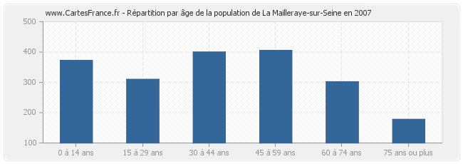 Répartition de la population de La Mailleraye-sur-Seine par âge en 2007 :
