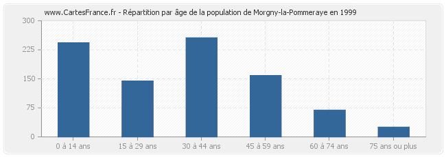 Répartition de la population de Morgny-la-Pommeraye par âge en 1999 :