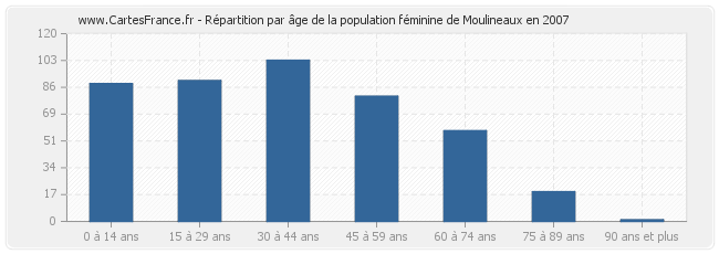 Répartition de la population féminine de Moulineaux par âge en 2007 :