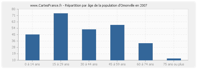 - Population d'Omonville de 15 à 29 ans : 74 habitants
