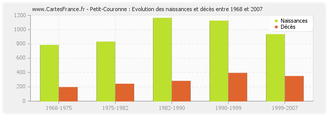 Petit-Couronne : évolution des naissances et décès de 1968 à 2007