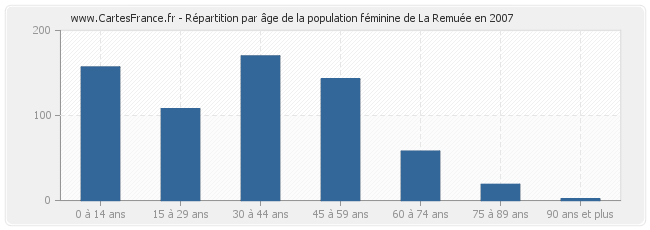 Répartition de la population féminine de La Remuée par âge en 2007 :