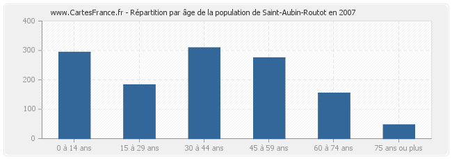 - Population de Saint-Aubin-Routot de 0 à 14 ans : 294 habitants