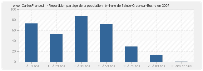 Répartition de la population féminine de Sainte-Croix-sur-Buchy par âge en 2007 :