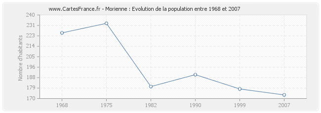La population de Morienne était de 173 habitants en 2007, 178 habitants en 1999, 190 habitants en 1990, 180 habitants en 1982, 233 habitants en 1975 et 225 habitants en 1968.
