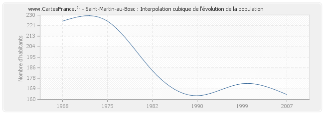 Cette courbe reprend l'historique de la population de Saint-Martin-au-Bosc de 1968 à 2007 en interpolation cubique. Ceci permet d'obtenir plus précisément la population de la commune de Saint-Martin-au-Bosc les années ou aucun recensement n'a été effectué.