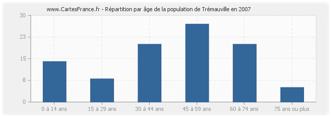 - Population de Trémauville de 45 à 59 ans : 27 habitants
