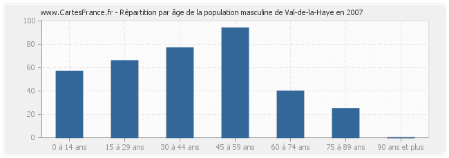 Répartition de la population masculine de Val-de-la-Haye par âge en 2007 :