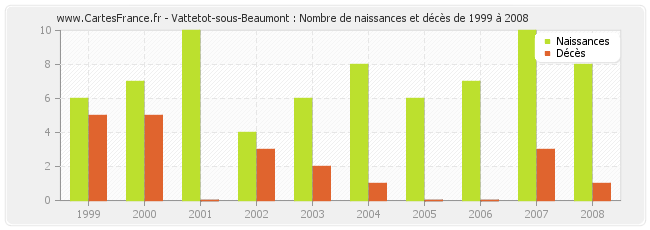 Vattetot-sous-Beaumont : naissances et décès de 1999 à 2008