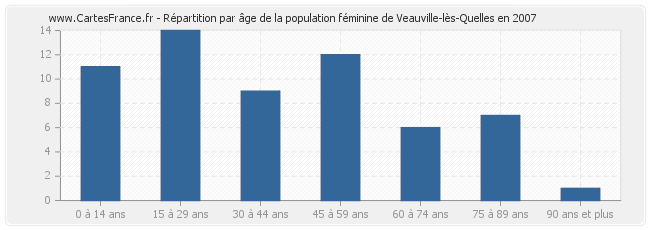 Répartition de la population féminine de Veauville-lès-Quelles par âge en 2007 :