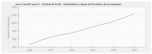 Cette courbe reprend l'historique de la population d'Achères-la-Forêt de 1968 à 2007 en interpolation cubique. Ceci permet d'obtenir plus précisément la population de la commune d'Achères-la-Forêt les années ou aucun recensement n'a été effectué.