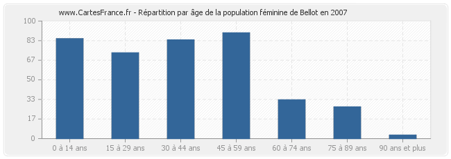 Répartition de la population féminine de Bellot par âge en 2007 :
