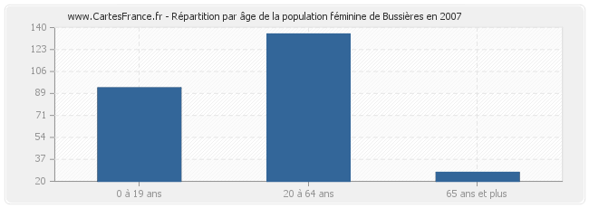 Répartition de la population féminine de Bussières par âge en 2007 :