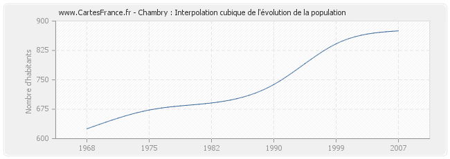 Cette courbe reprend l'historique de la population de Chambry de 1968 à 2007 en interpolation cubique. Ceci permet d'obtenir plus précisément la population de la commune de Chambry les années ou aucun recensement n'a été effectué.