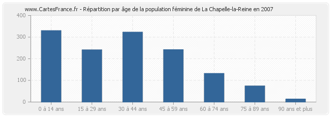 Répartition de la population féminine de La Chapelle-la-Reine par âge en 2007 :