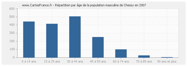 Répartition de la population masculine de Chessy par âge en 2007 :