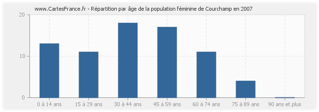 Répartition de la population féminine de Courchamp par âge en 2007 :