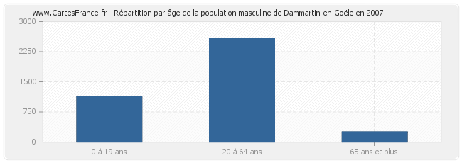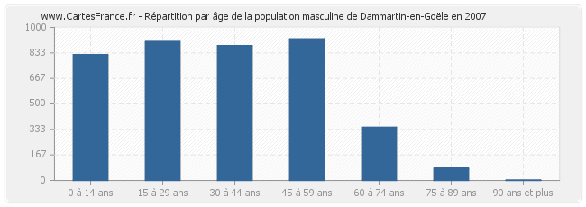 Répartition de la population masculine de Dammartin-en-Goële par âge en 2007 :