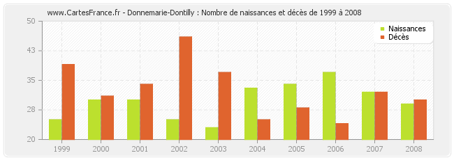 - Donnemarie-Dontilly en 2008 : 29 naissances et 30 décès