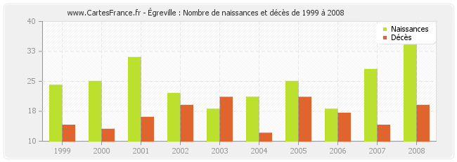 Égreville : évolution des naissances et décès de 1968 à 2007