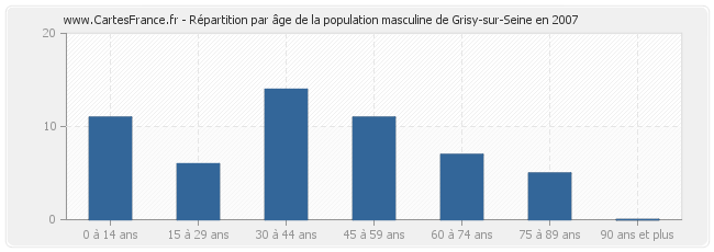 - Hommes de 0 à 14 ans habitant Grisy-sur-Seine : 11