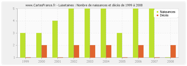 Luisetaines : naissances et décès de 1999 à 2008