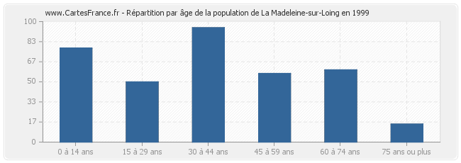 Répartition de la population de La Madeleine-sur-Loing par âge en 1999 :