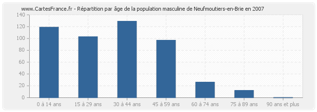 Répartition de la population masculine de Neufmoutiers-en-Brie par âge en 2007 :