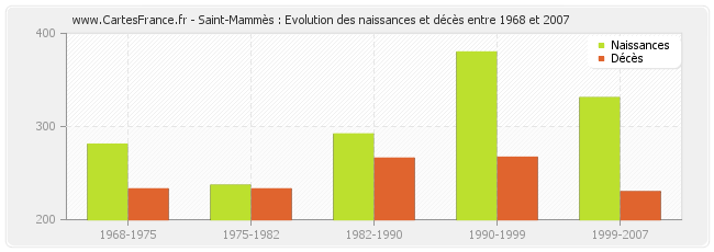 Saint-Mammès : évolution des naissances et décès de 1968 à 2007
