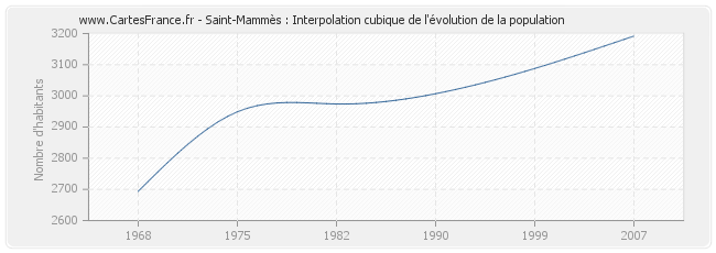 Cette courbe reprend l'historique de la population de Saint-Mammès de 1968 à 2007 en interpolation cubique. Ceci permet d'obtenir plus précisément la population de la commune de Saint-Mammès les années ou aucun recensement n'a été effectué.