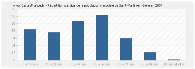 Répartition de la population masculine de Saint-Martin-en-Bière par âge en 2007 :