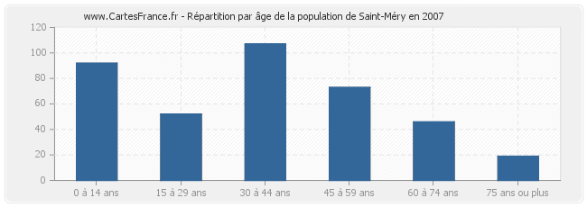 Répartition de la population de Saint-Méry par âge en 2007 :