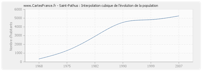 Cette courbe reprend l'historique de la population de Saint-Pathus de 1968 à 2007 en interpolation cubique. Ceci permet d'obtenir plus précisément la population de la commune de Saint-Pathus les années ou aucun recensement n'a été effectué.