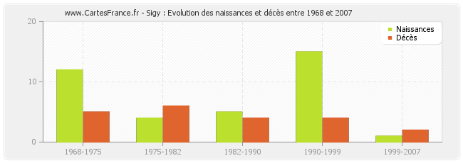 Sigy : évolution des naissances et décès de 1968 à 2007