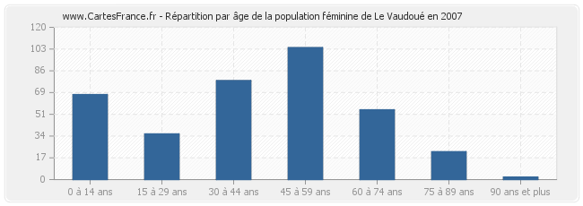Répartition de la population féminine de Le Vaudoué par âge en 2007 :