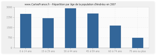 - Population d'Andrésy de 30 à 44 ans : 2 914 habitants