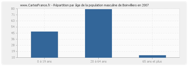 - Hommes de 20 à 64 ans habitant Boinvilliers : 79
