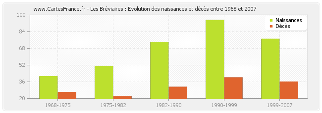 Les Bréviaires : évolution des naissances et décès de 1968 à 2007