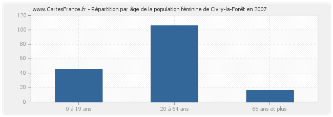 Répartition de la population féminine de Civry-la-Forêt par âge en 2007 :