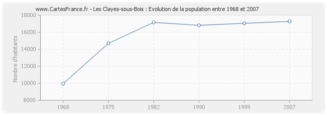 Historique de la population de Les Clayes-sous-Bois de 1968 à 2007 :