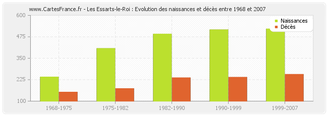 Les Essarts-le-Roi : évolution des naissances et décès de 1968 à 2007